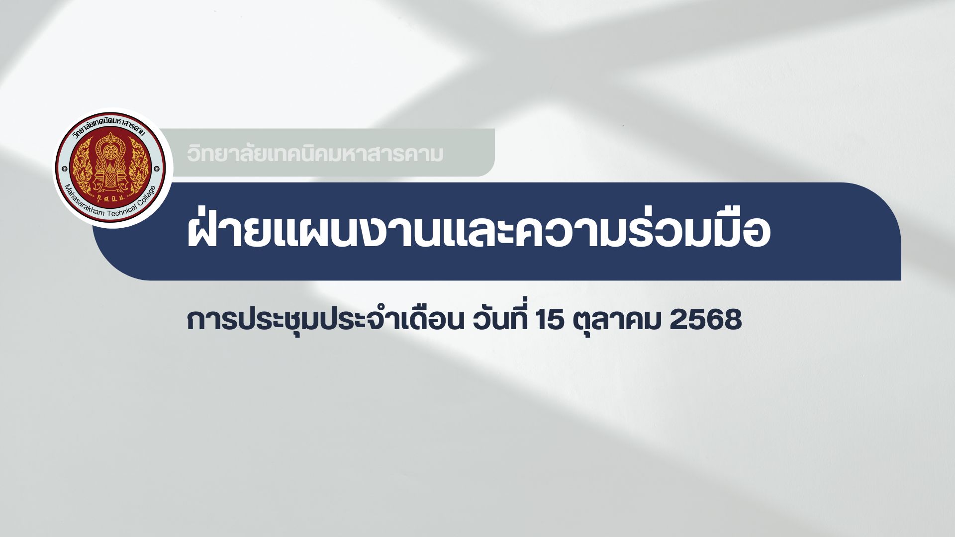 สรุปงานประจำเดือน ในการประชุมประจำเดือนฝ่ายแผนงานและความร่วมมือ