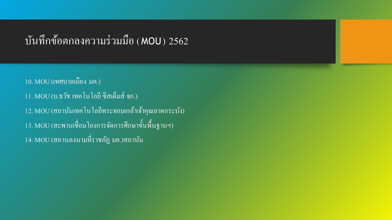 บันทึกข้อตกลงความร่วมมือ MOU แต่ละปี